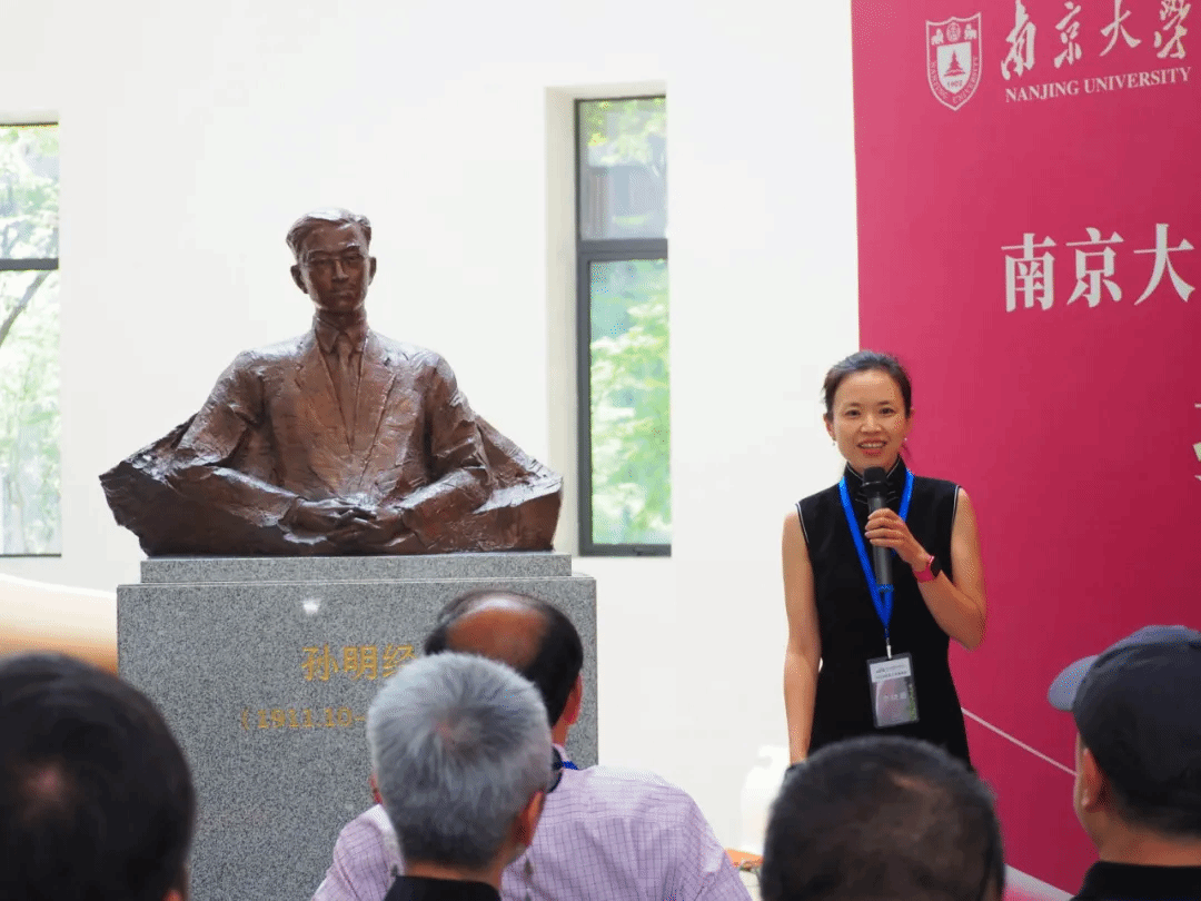 座谈会结束后,校友们来到学院大楼,一同见证孙明经先生雕像揭幕仪式。副院长李晓愚向校友们介绍了孙明经先生的生平业绩。仪式由院党委副书记季晓敏主持。