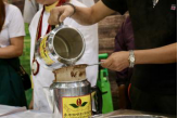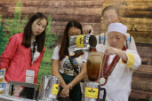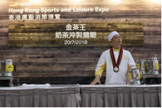 下午两点不到,运动消闲博览最大的体验区已经坐满了人,清一色的港式奶茶爱好者直直盯着台上,看着红茶壶开始冒起热气,“金茶王奶茶冲制体验”的师傅开始介绍港式奶茶的特点,原来香港的奶茶之所以能成为老饕们的心头挚爱,是因为它更香,更浓,更滑。