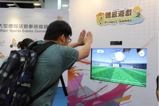 香港运动消闲博览打出“体验牌“,每一个展位都有活动区,设有各种休闲体验和游戏设施供人们“玩”。比如有“金茶王奶茶冲制体验”、“赛马会VR运动体验”、“AR运动及射箭体验”等,只有大众想不到,没有“博览”做不到!
